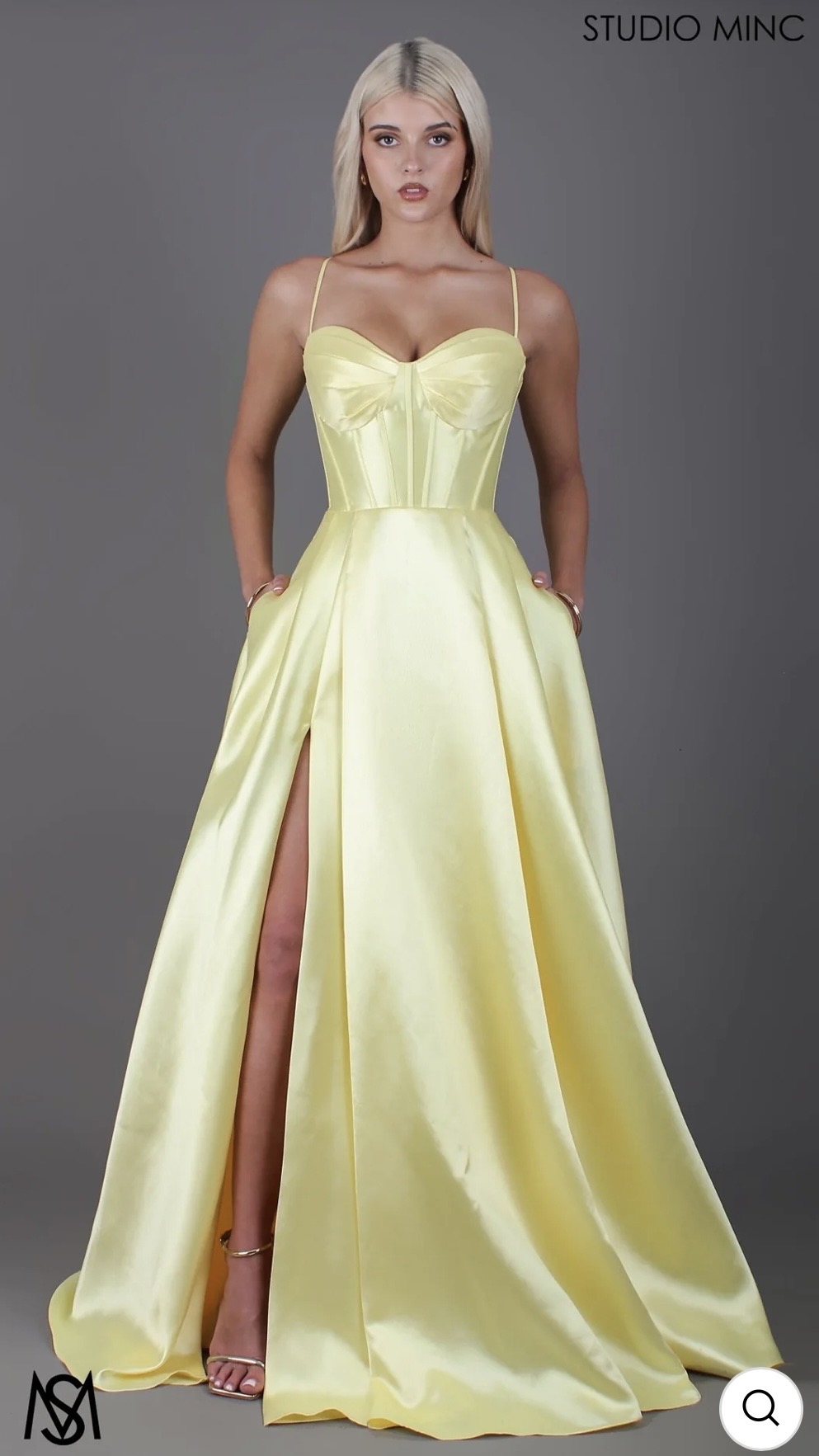 The ‘Capri’ gown is a statement ball gown with strapless corset featuring pleated bust cups and flattering diagonal boning. Combining bold colour in crisp satin mikado, the skirt is a full circle gown with pleats, leg slit and pockets. Stand out in Capri for formals, prom, balls, and black-tie events.