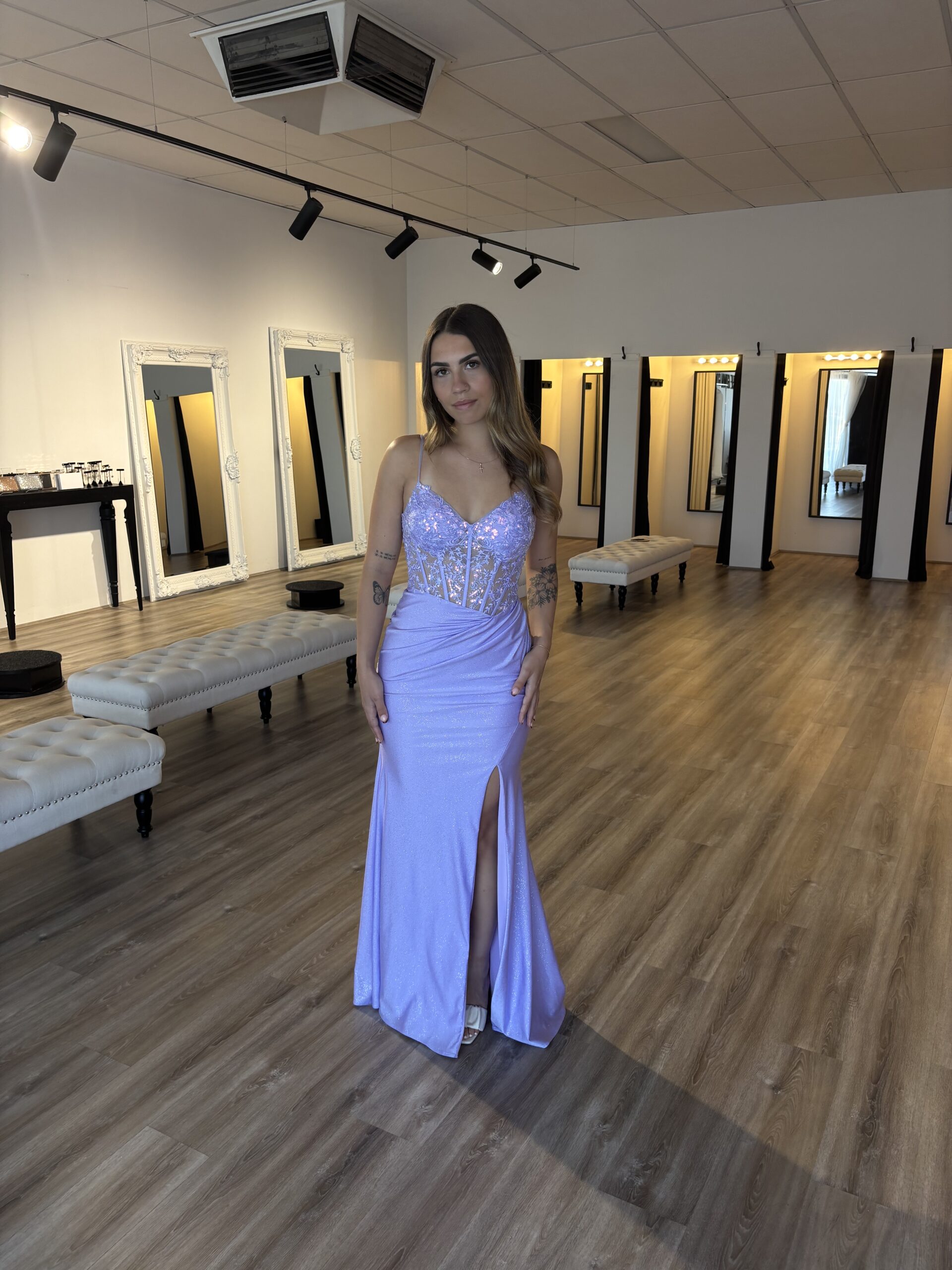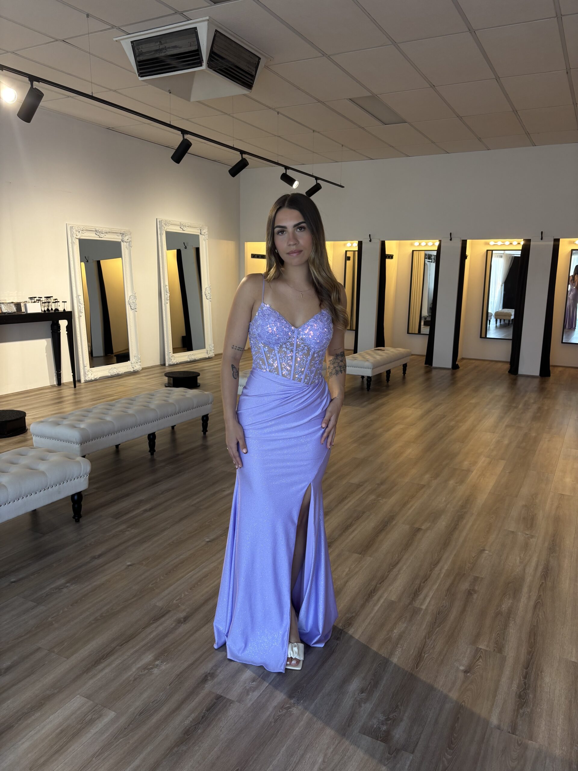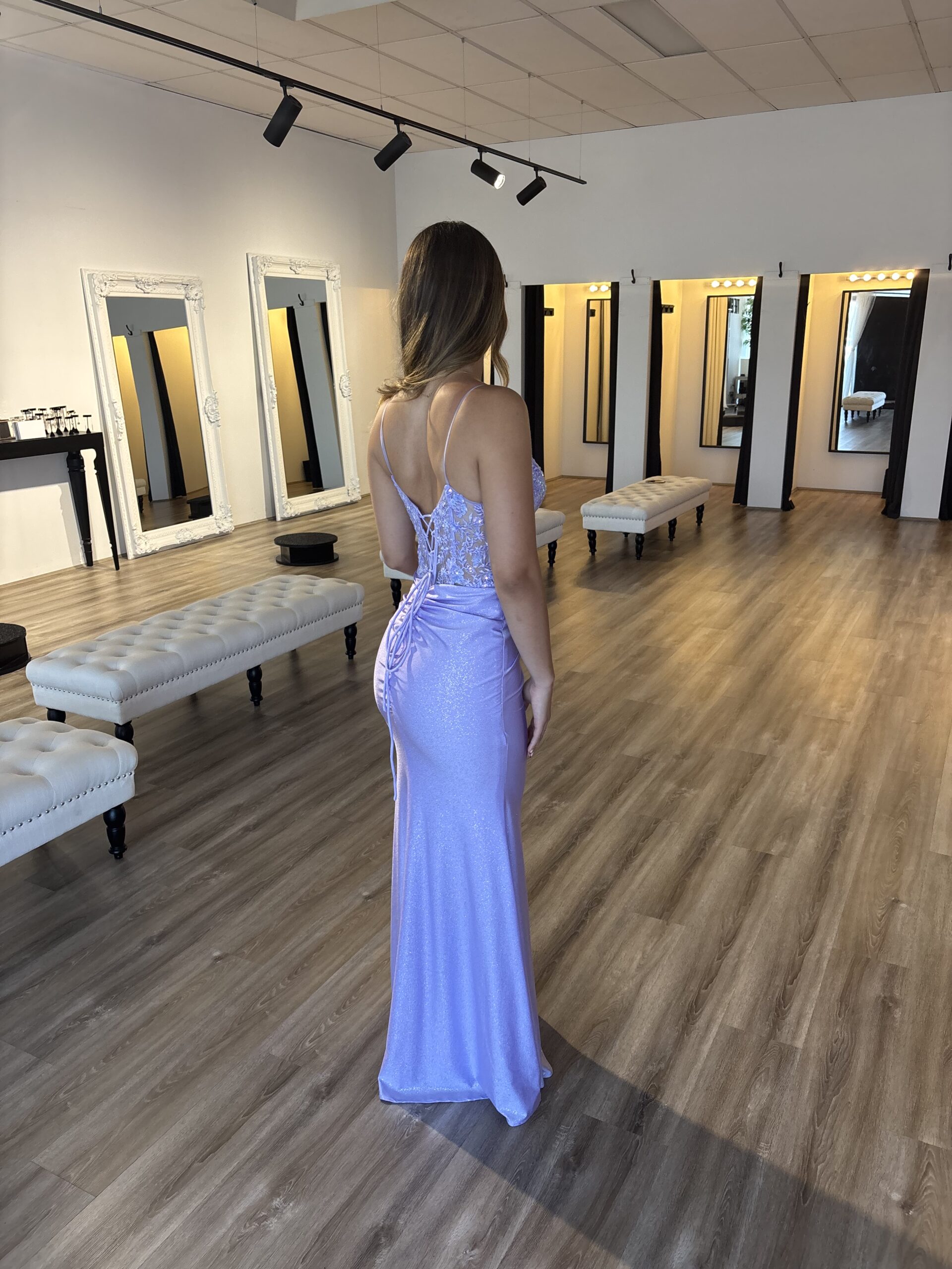 Introducing the epitome of femininity and allure, the CYPRESS formal dress. Prepare to be captivated by the illusion tulle bodice, adorned with intricate lace applique, creating a mesmerizing interplay of sheer and solid textures. The corset-like design delicately reveals just the right amount of skin, striking a perfect balance between allure and refinement. Enhanced with perfectly placed ruching, the fitted silhouette accentuates the female form with undeniable charm. Delicate spaghetti straps add a touch of delicacy to the ensemble, while built-in bra cups and boning ensure impeccable support and comfort throughout the night. With the lace-up back detail, Cypress offers a touch of vintage elegance, allowing you to adjust the fit to perfection. Complete with ruched back detailing and an invisible zip closure, this dress is a true testament to sophistication and refinement. Available in sizes AU 4-40 / US 00-36, Cypress is designed for those who aren’t afraid to embrace their femininity and leave a lasting impression. Available in Cobalt and Lilac.